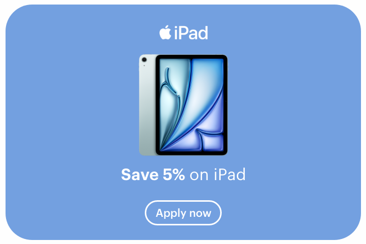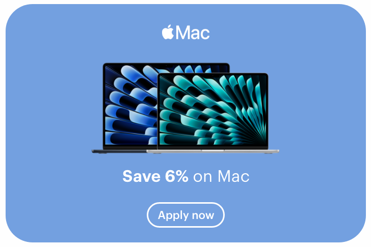 Save 6% on selected MacBook Air (M1, M2, M4), MacBook Pro (M4, M5), Mac mini and iMac models only. The offer cannot be used in conjunction with any other promotion or discount.